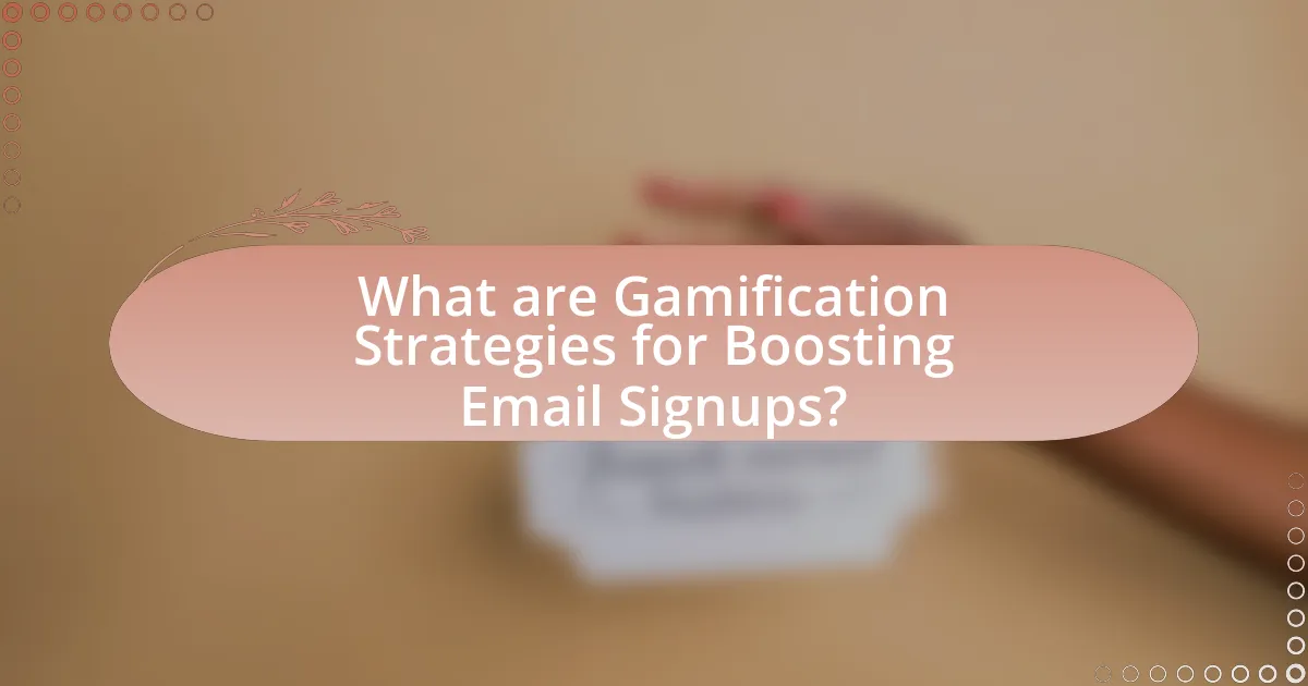 Gamification strategies are techniques used to enhance user engagement and boost email signups through game-like elements. Key strategies include implementing reward systems, interactive quizzes, and progress tracking, which leverage psychological principles of motivation and engagement. The article explores how these strategies effectively engage users, the role of rewards and incentives in driving participation, and the importance of email signups for businesses in terms of customer retention and revenue growth. Additionally, it discusses best practices for designing gamified experiences, the integration of gamification tools with email marketing systems, and metrics to measure the success of these strategies.